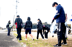 3年ぶりに開催される尾鈴マラソン大会に向けて、都農町社会福祉協議会を中心にボランティア連絡協議会や老人クラブ連合会、都農中学校、ツノスポーツアカデミー、高鍋高校、高鍋農業高校などが参加して町内の清掃活動を行いました。