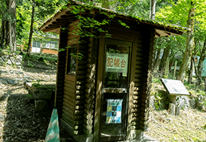 記帳台は元々電話ボックスを再活用したものだとか。ログハウスのような外観でとてもかわいい!また、利用者がメッセージを残すことができます。ぜひ思い出に書いてみませんか?