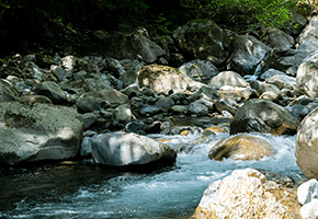 冷たい名貫川の水は暑い夏にぴったり!せせらぎや景色を楽しんだり、浅瀬で水遊びも楽しめるおすすめスポットです。川の流れが早いところや、深いところもあるので、遊ぶ際の足元には十分お気をつけください。