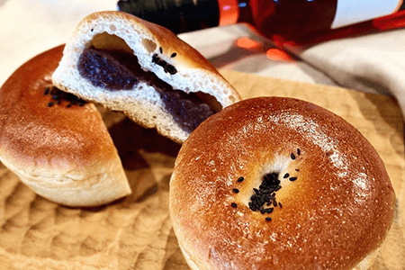 自社製キャンベル・アーリー(ロゼ)を使用した餡をたっぷり詰めたあんぱんです。シェフこだわりの餡は、優しい風味の中にロゼワインを感じる大人な餡に仕上がっています。