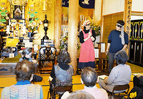 団扇太鼓による認知症予防は、認知症カフェ以外でも、龍雲寺で月に一回「法華和讃会」として開催されています(不定期)。