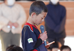 全校集会を終えて、立松由緯菜さん(名貫)は「将来は大谷選手のような素敵なバッターになりたいと思っており、憧れの大谷選手からグローブを寄贈していただけるなんて夢のようです。このグローブを使って守備も頑張ります!」と話していました。