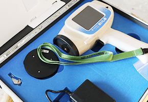 ㋤成田果樹園でつくられたぶどうのデータを登録し、実をつぶすことなく精密な糖度を計ることが出来るオーダーメイドの糖度計。