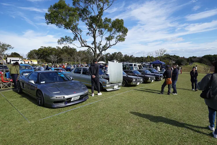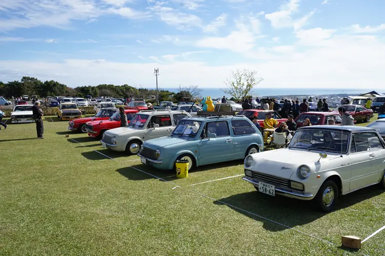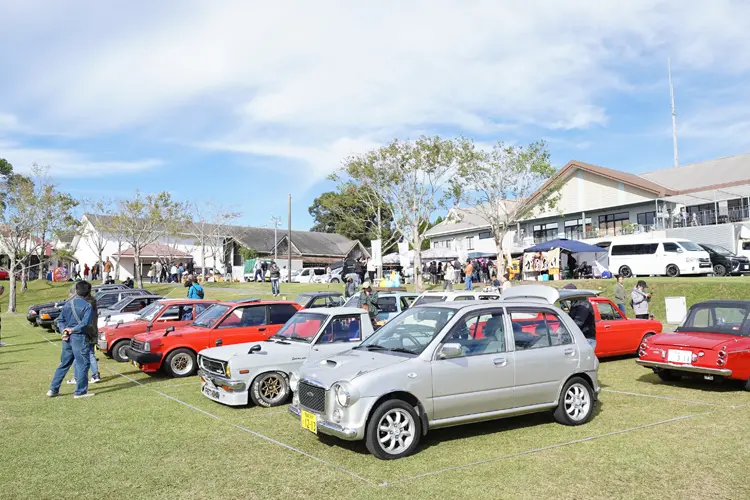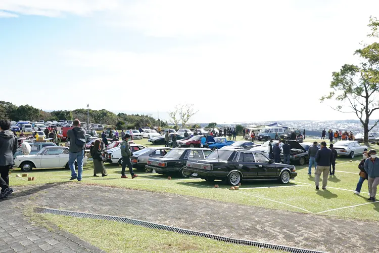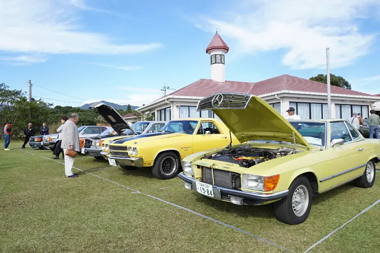 都農ワイナリーで「旧車の祭典 CAR FESTA MIYAZAKI in TSUNO」が開催され、昭和の車を中心に77台の旧車が大集合しました。