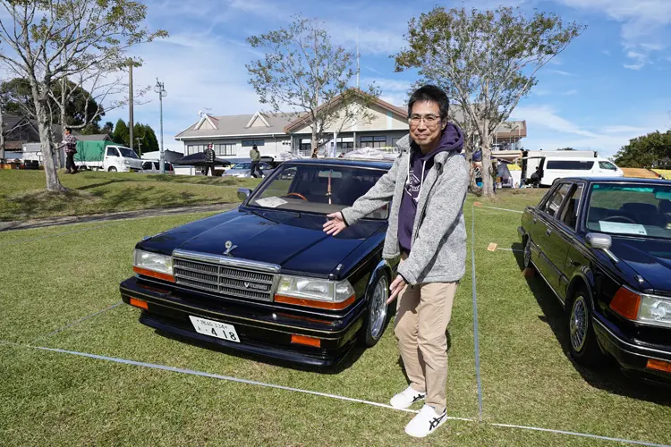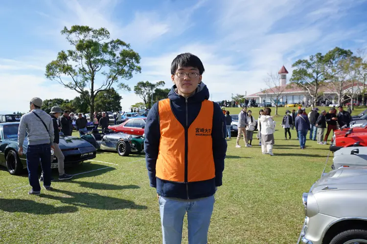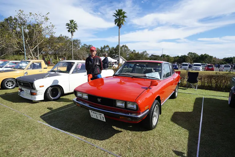 いすゞ 117クーペを展示された小川 敦志さん(宮崎市)は「車がたくさん集まって良かったです。同じ旧車好きと交流できるので楽しいです。」と話しました。