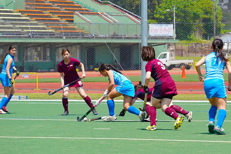 2つのチームがフィールド上の硬球をL字型のスティックで争奪し、相手ゴールに向けてボールを打ち込み得点を競い合うスポーツです。