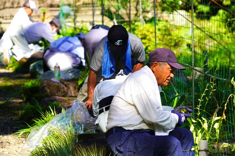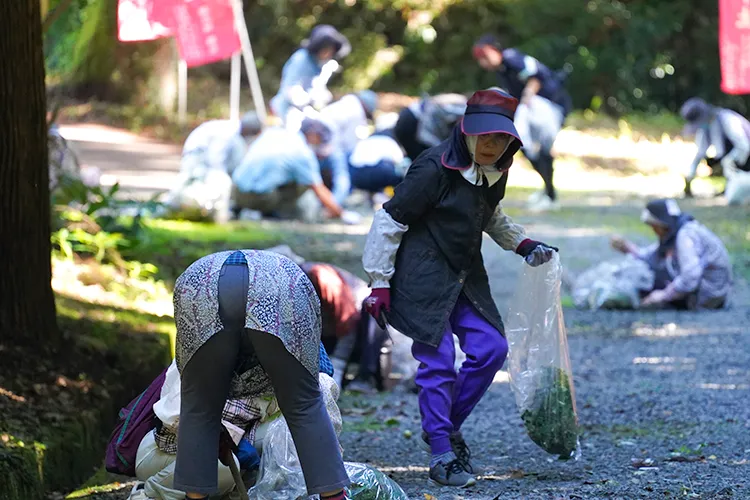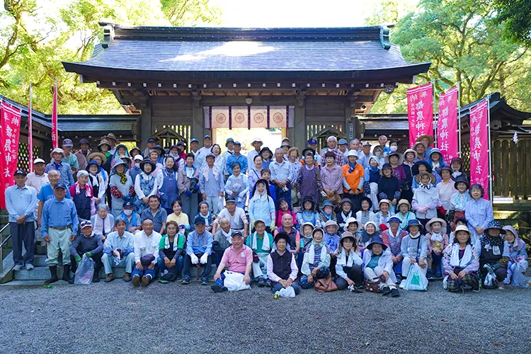 日向国一之宮都農神社夏祭に向け、都農町老人クラブ連合会が都農神社境内の清掃を行いました。