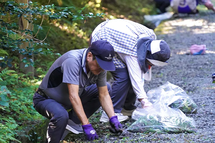 夏祭前の都農神社境内清掃活動
