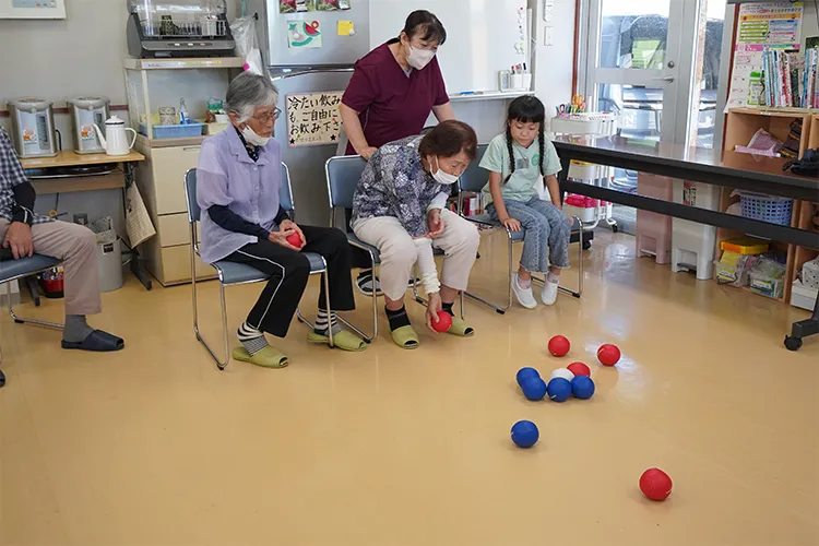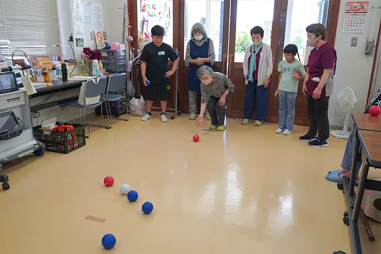 座ったままできる体操や、パラリンピックの正式種目である「ボッチャ」をレクリエーションとして実施。