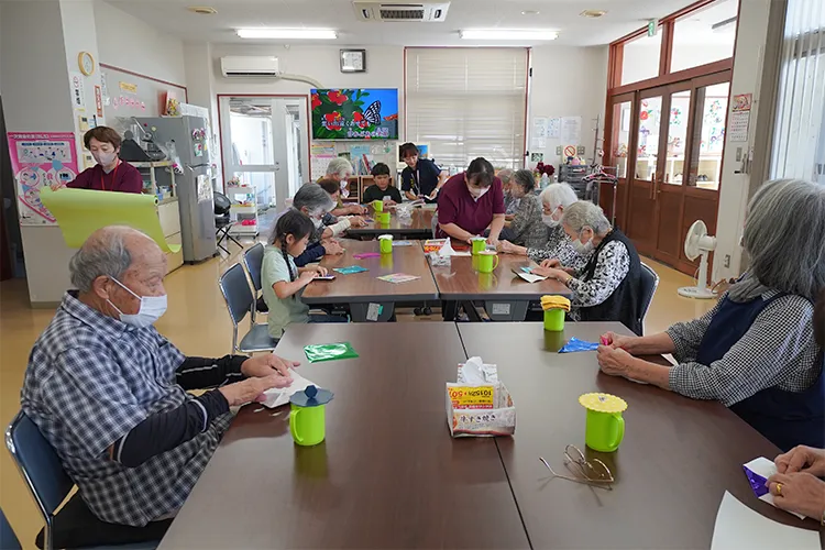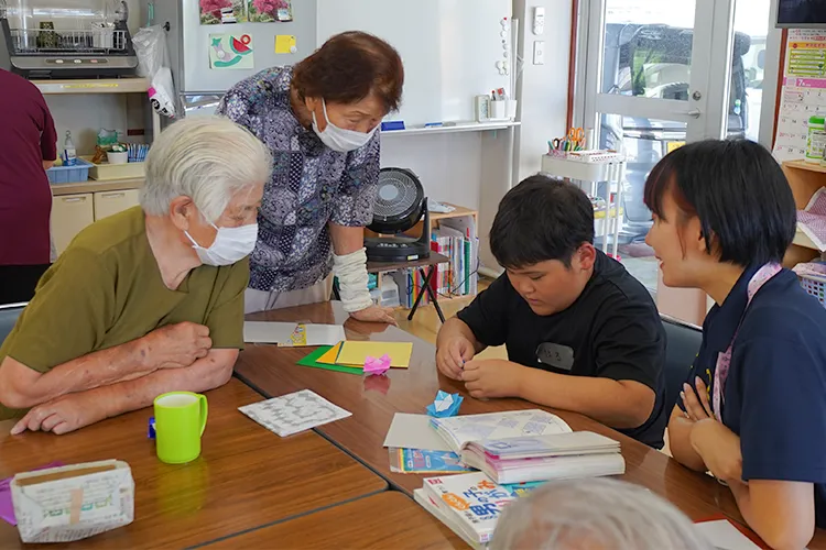 高齢者ふれあいセンターで、施設職員と町内の小学生が、一緒に業務の運営を行いました。