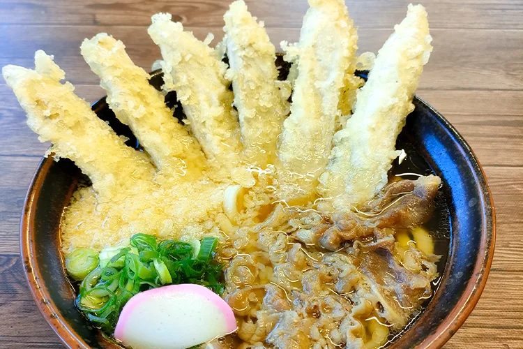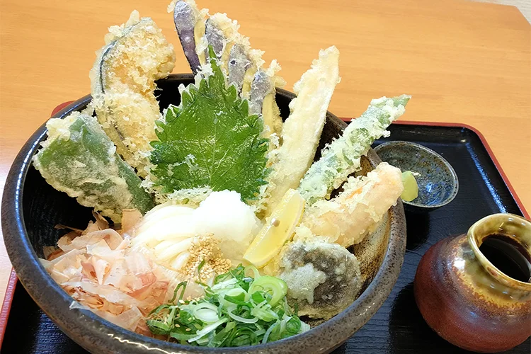 地元の新鮮野菜を使った揚げたて天ぷらと、打ちたて・茹でたてにこだわった自家製麺が魅力。イチオシは「野菜天ぶっかけうどん」と、牛肉の甘み&北海道産昆布のスープに揚げたてサクサクのごぼう天がのった「肉ごぼう天うどん」です!