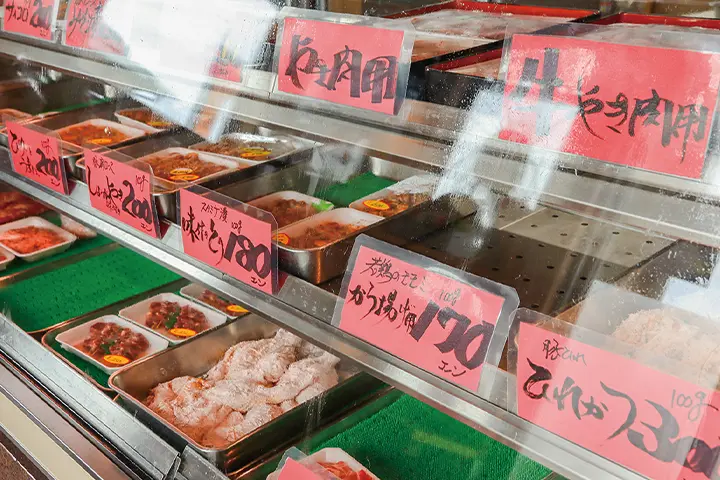 創業60年の追求の中で生まれた、精肉(宮崎牛・豚肉・鶏肉)をはじめ、たくさんの商品を提供する精肉店。生姜焼き、油みそや焼肉のタレなど肉のくろぎオリジナルの味付けが味わえます。お持ち帰り用の揚げ物は、ジューシーな唐揚げからトンカツ、ハムカツ、メンチカツなど多種多様なレパートリーで全て手作りです!(揚げ物各種要予約)