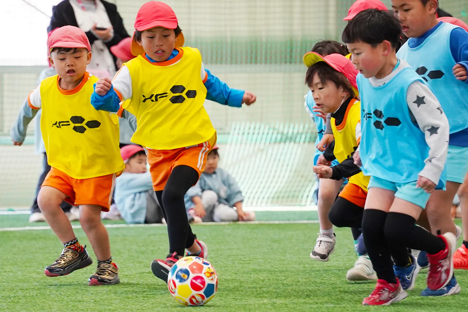 町内保育施設年長児を対象としたサッカーイベントが藤見公園で開催されました。ヴェロスクロノス都農U-18の選手たちも運営をサポートする中、園児たちは元気にボールを追いかけゴールを狙いました。ピッチ外では保護者の声援が響き、会場は賑やかな雰囲気に包まれました。主催した一般社団法人ツノスポーツアカデミーの向井亮祐さんは「サッカーを通じた交流で子どもたちの仲間意識を育むとともに、町全体で応援し合える関係を築いていきたい」と話しました。