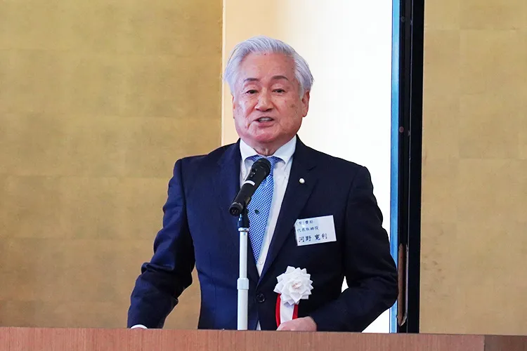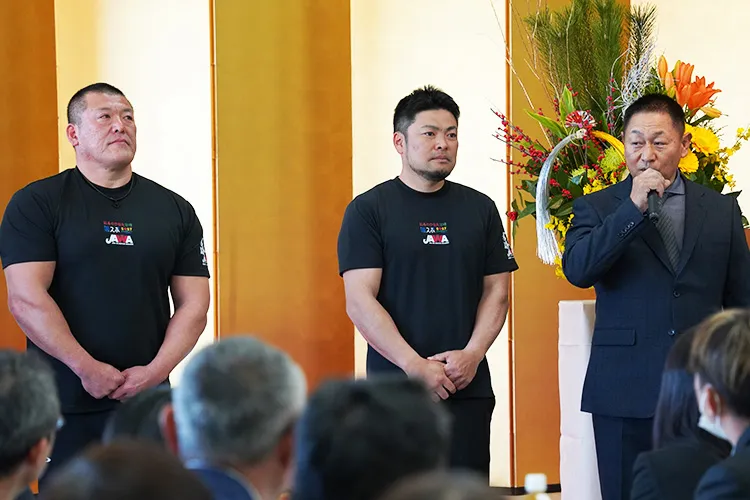 JAみやざき都農支店で開催され、町内の諸団体や商工・農業関係者などが一堂に会し、新年のあいさつを交わしました。会の中では2027年に開催される「日本のひなた宮崎国スポ」で都農町が会場となる正式競技のホッケーの紹介VTR上映とデモンストレーション競技のアームレスリングの選手による実技披露が行われ、その迫力あるパフォーマンスに会場は大いに盛り上がりました。